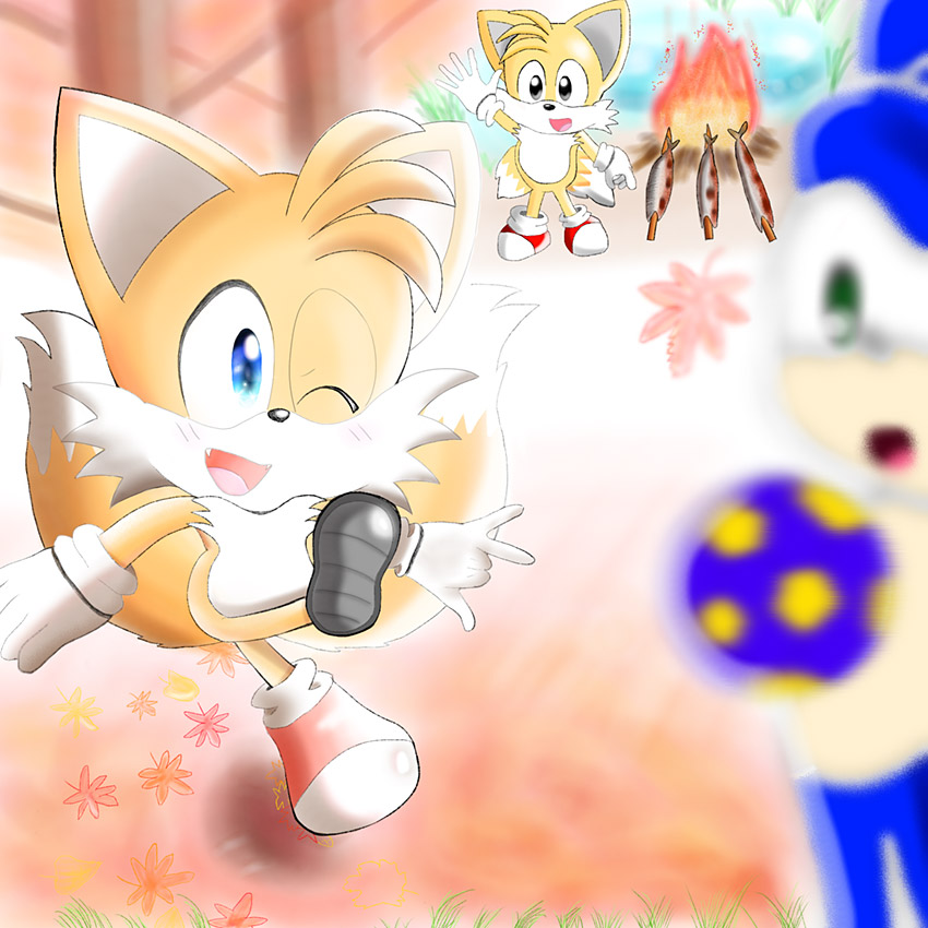 秋と言うテーマで思いつくのはやはり○○の秋。 ということで自分はスポーツの秋にしました。 ソニックとサッカーができてテイルスは嬉しそう!