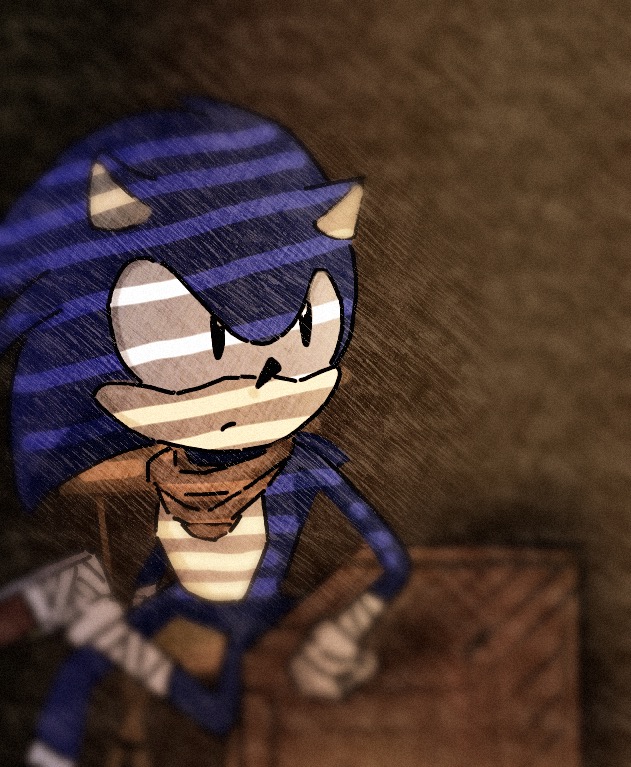 戦ってる時とかに、ピコピコハンマーで叩く癖がついてそうだなと思って描きました。穴からでてきたなら尚更で...、ソニックアドベンチャーでもピコピコハンマーで叩くの楽しかったです。