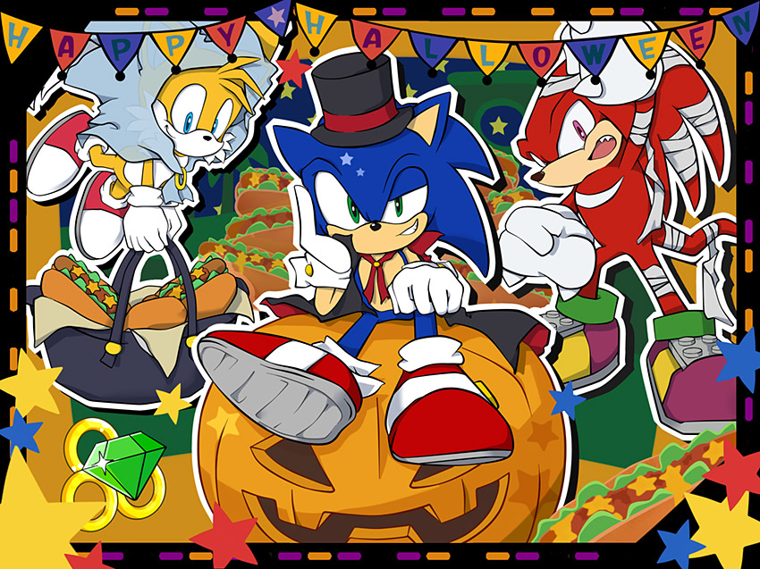 "チリドッグをくれないといたずらしちゃうぞ!!"なチームソニックを描いてみました。久しぶりの投稿ですが、これからのソニック達の活躍も楽しみにしています!