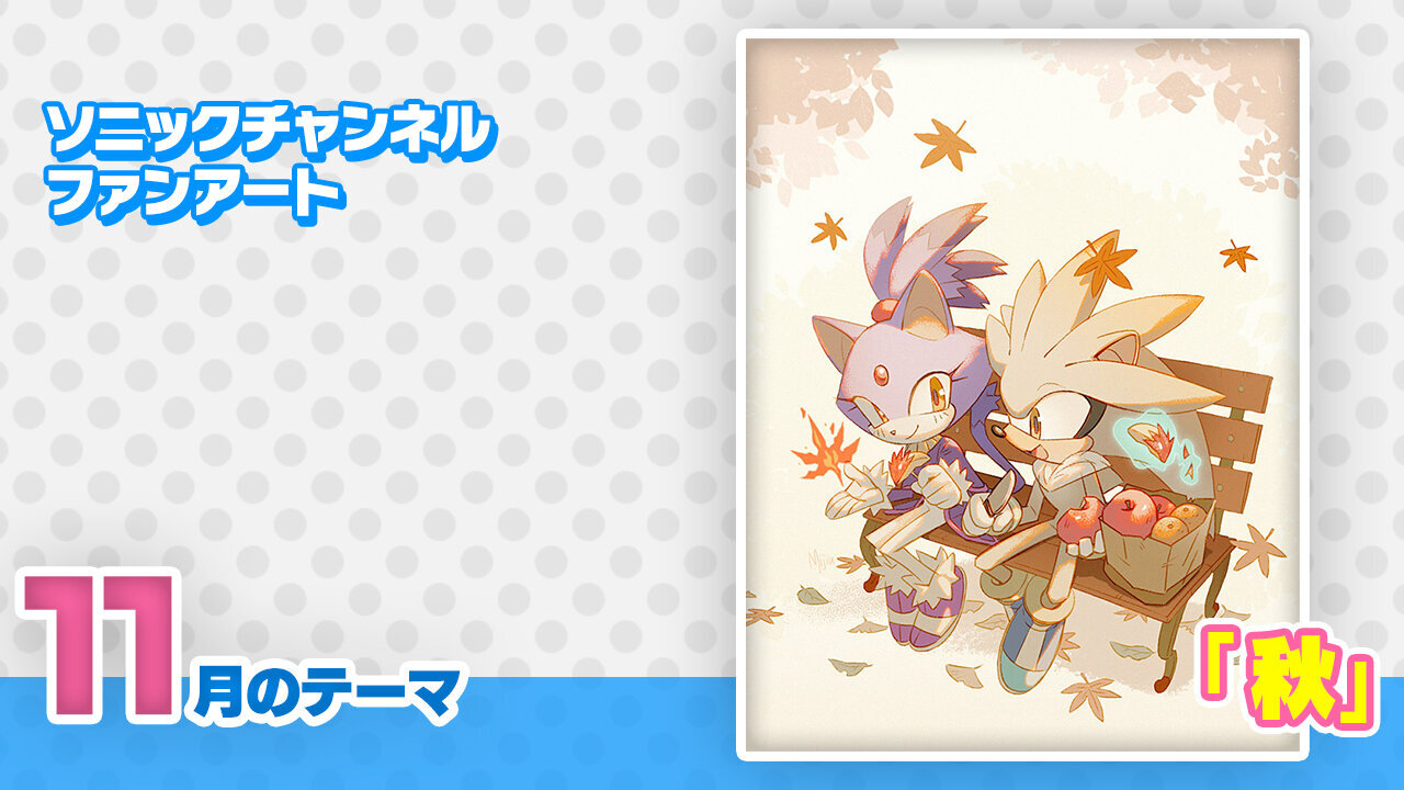 テーマの「秋」らしく画面いっぱいに広がる見事な紅葉や、焼き芋や栗といった旬の食べ物など、季節の訪れを楽しむ様子を描いた作品を多く頂きました!落ち葉の一枚一枚から肌寒さを感じる空気感まで、とても繊細に表現されていると思います。11月8日発売の『ソニックフロンティア』にちなんだ作品も頂きましたが、こちらも今年の秋の一つかもしれませんね。