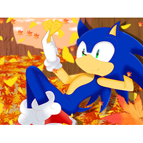 紅葉を楽しむソニックの様子を描いてくれました!たくさんの秋の味覚を楽しむソニックの満足そうな笑顔が良いですね。燃えるような紅葉の色彩も印象的な作品です。