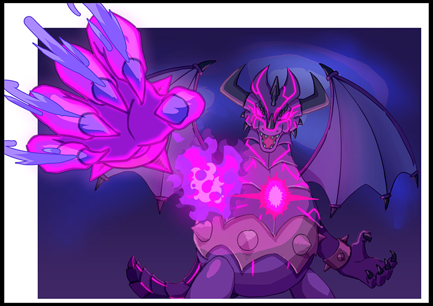 ラスボスのドラゴンを描きました。禍々しい第二形態がかっこよくて好きです。迫り来る手を強調するために枠を突き破ってみました。