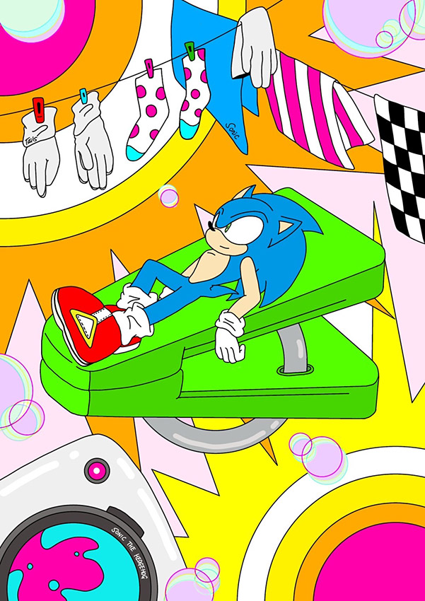 一際目を惹くカラーリングで、おしゃれにまとまったアーティスティックな作品!よく見るとお洗濯物に名前があって、ソニックとテイルスは当番制なのかどうか気になってしまいました笑