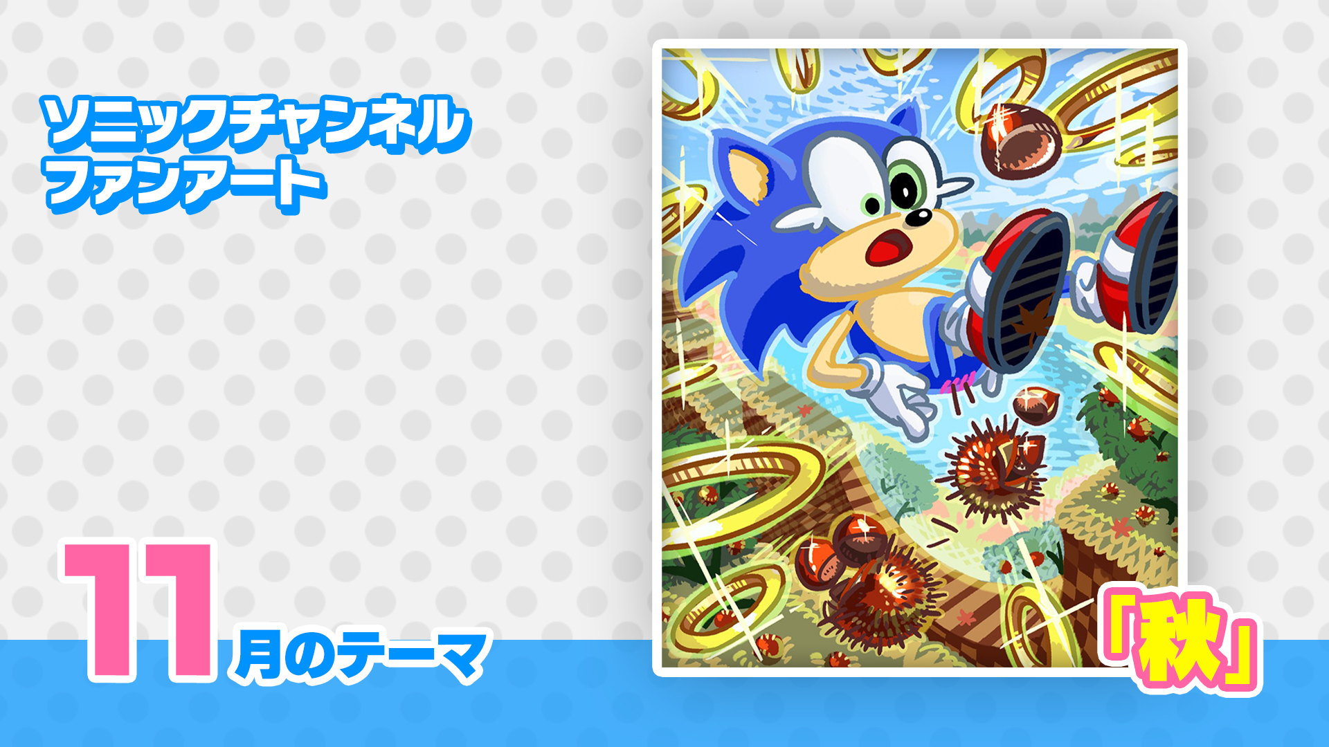 落ちてくる紅葉を受け止めるソニックの動作が、風情があって素敵ですね!画面いっぱいに広がるオレンジ色にも複雑な色味の違いがあり、秋らしさが詰まっています。