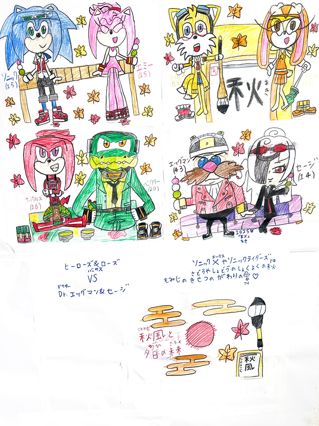 「ソニックX」や「ソニックライダーズ」も同じデス!。ヒーローズやローズの対戦相手はエッグマン&セージで11月の秋も茶道や書道で勝負してマス!。 休憩中に三色団子も秋にピッタリな気分デス!
