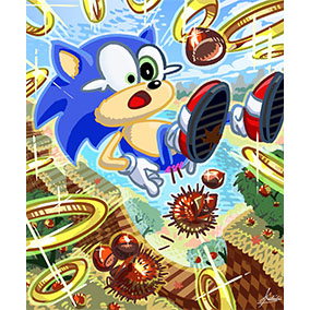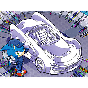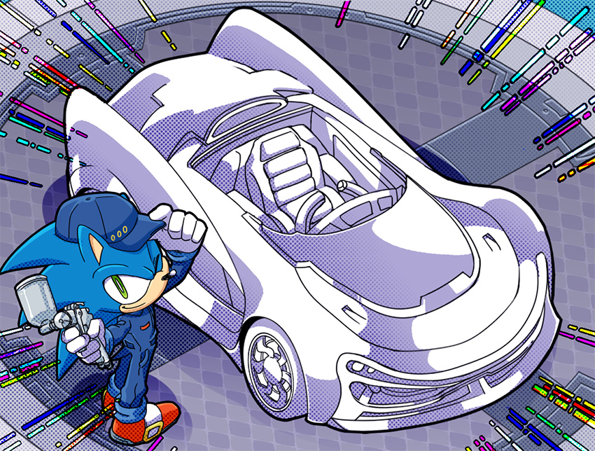 俯瞰からの難しい構図が見事に描かれています。ソニックのペイントスキルも気になりますが、つなぎ姿のソニックも新鮮でカッコいい!