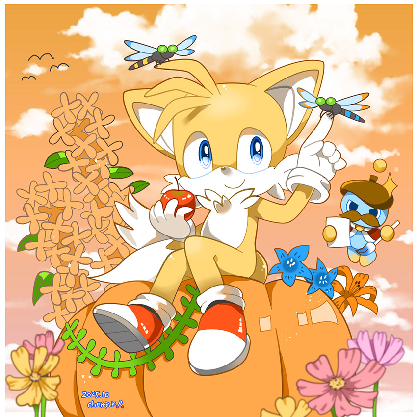 夕焼けと秋の草花がテイルスにとても似合っていますね!チャオ画伯はどんな絵を描くのでしょうか?ベレー帽がかわいいです!