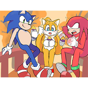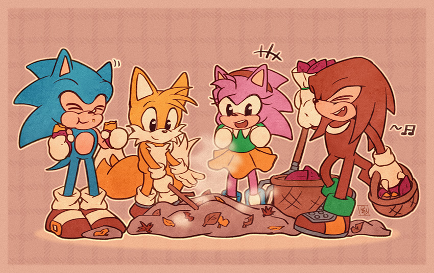 ソニック、テイルス、ナックルズで焼き芋を食べる絵を描きました!火傷には気をつけてね!!