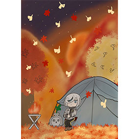 繊細で儚げなタッチに惹かれます。落ち葉の透け感や木漏れ日の表現、秋の色彩が美しいですね。エミーの柔らかな微笑みも素敵です。
