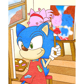 エミーの絵に描かれたソニックはどんな表情をしているのか気になります。ソニック本人もやる気に満ちた表情で、完成が楽しみです。いったいどんな絵になるのでしょうか...?