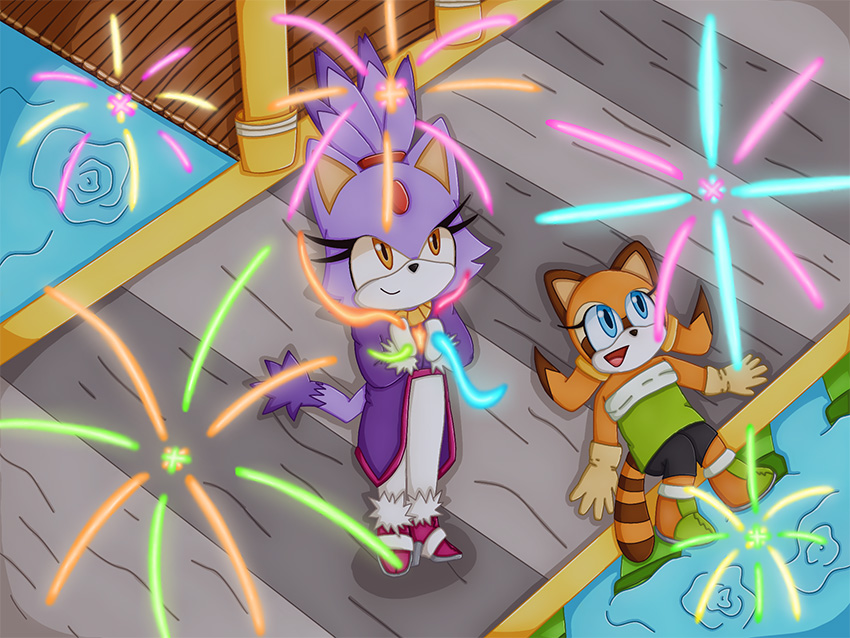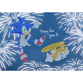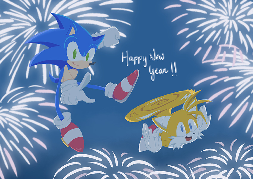 ソニックとテイルスが花火の中飛んでいるシーンを描きました。素敵一年になりますように!