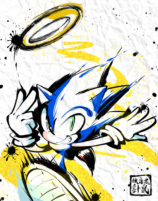 色使いと筆の軌跡がとてもマッチしています。ソニックの表情もカッコイイ!新年もエネルギッシュに駆け抜けていけそうです!