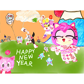 一富士二鷹(ウェーブと羽子板)三茄子(小さい)を描きました。今年もソニックレーシングの可愛いいエミーとウェーブをやり込みたい!