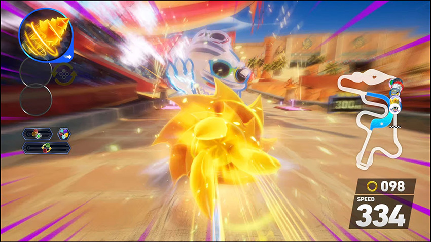 ソニックとの再戦のために久しぶりに地上のレースに参加したジェットでしたが、今回のレースはゴール前のデットヒートや攻撃が激しくて風の流れが読めずに焦っている様子を撮ってみました。