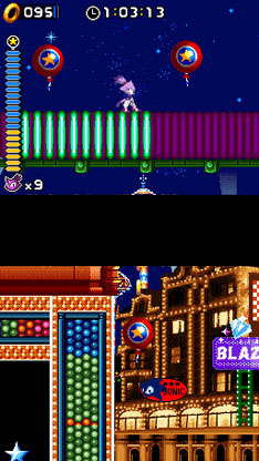 本作ではもうひとりの主人公として、不思議なパワーを秘める宝石「ソルエメラルド」を守護する皇女・ブレイズが初登場!ソニックは一瞬で超音速に到達する新技「スーパーブースト」、そしてブレイズは炎を操る特殊スキルを駆使してそれぞれの物語に挑みます。
