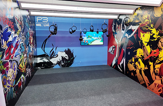 セガ/アトラスはブースを設けて、『ソニックレーシングクロスワールド』、『ペルソナ3 リロード』 の試遊、フォトスポット、ヘッドホンでセガ/アトラスのゲーム音楽の試聴が楽しめる「サイレントディスコ」を展開。試遊のノベルティとして配布されていたレコード型のミュージック・キーホルダーは、スマホをかざすとYouTubeの専用プレイリストが表示される仕様で、このノベルティのために、ソニック音楽初心者の方にも楽しんでいただけるプレイリストを、『音速ゲーマーズ』でもお馴染み、いなっちが作成してくれました。