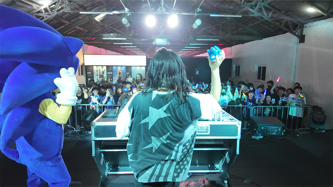 セットリストは7月に開催した「SONIC MUSIC EXPERIENCE(以下SME)」から定番曲は残しつつ新しい曲を加えつつ調整、前半は景気よく始まるように『ソニックレーシングクロスワールド』の曲も加えました。「Super Sonic Racing」のブレイクでMCを入れるスポットがあり、「SME」では突然のクイズを出しましたが、前日に韓国のセガスタッフと会食をする中で、韓国語で一言MCをすることに決まりました。