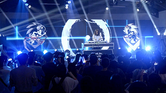 背面のワイドなLEDディスプレイもインパクトがあり、VJ: KIKUZOが繰り出す映像がショウを鮮やかに彩りました。ソニックのDJはVJとのセットでのパフォーマンスとして確立したいと思っているので、回を重ねるごとにレベルアップ出来ているように感じています。