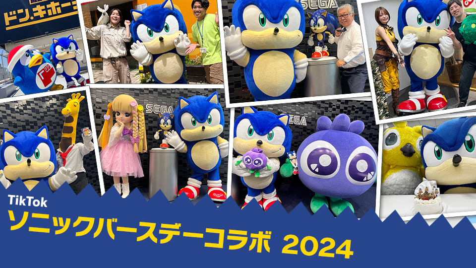 TikTok ソニックバースデーコラボ2024情報 2024.07.09 セガ公式TikTokアカウントにて、今年もソニックバースデーを記念したコラボ動画を公開中!色んな方々とのコラボ動画をアップしておりますので、ぜひご覧ください。 ドンペン【公式】さん コラボ動画はこちら リカちゃん コラボ動画はこちら ブルブルくん【公式】 コラボ動画はこちら じゃがりこのキリン(じゃがお) コラボ動画はこちら 長崎バイオパークさん コラボ動画はこちら 三和交通さん コラボ動画はこちら ラッピーさん コラボ動画はこちら ラストクラウディアさん コラボ動画はこちら コラボしてくださった皆様、ありがとうございました! セガ公式TikTokではいろいろな動画を公開しておりますので、ぜひ今後も楽しみにしていてください! →セガ公式TikTok