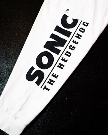 長袖Tシャツは、特別仕様のシャドウを左胸にワンポイントであしらい、右腕に「ソニック」シリーズのタイトルロゴを、左腕にレッドのティンバーランドロゴをデザイン。