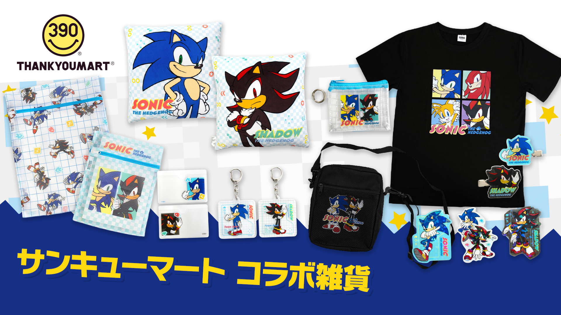 「Be Smile, Be Kawaii」をテーマに、キャラクターの限定アイテムを中心としたカワイイ推しグッズがいつ来てもALL390円で手に入るショップ「サンキューマート」と、『ソニック・ザ・ヘッジホッグ』とのコラボレーション雑貨が2026年1月中旬より全品390円(税込429円)で入荷次第販売開始!