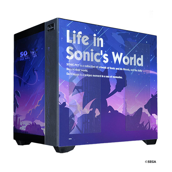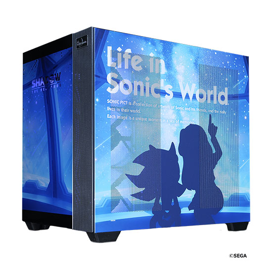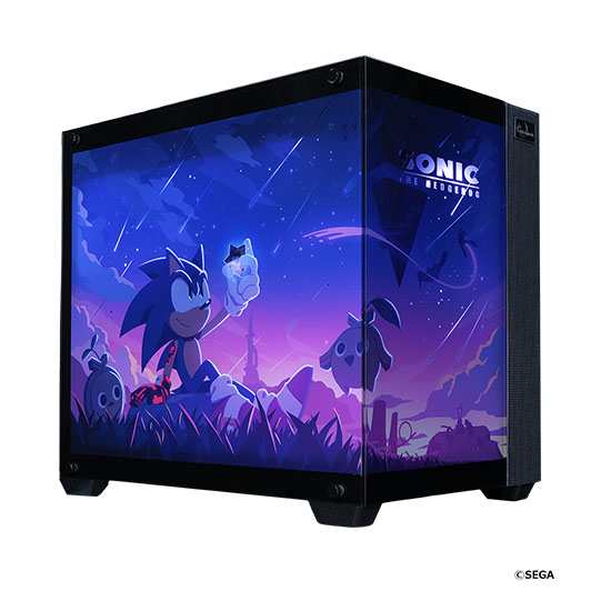 ピラーレス構造により、内部PCパーツのライティング演出を楽しめる設計となっている他、ガラスパネル部分には、キャラクターイラストと星輝く夜空をテーマとした美しいデザインが施されております。